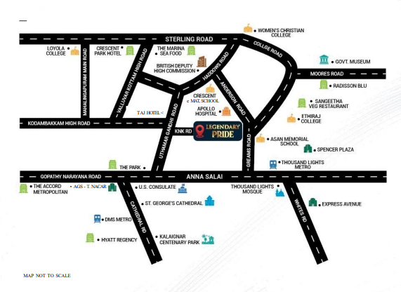 Located in the upscale Khadar Nawaz Khan (KHK) Road, Chennai